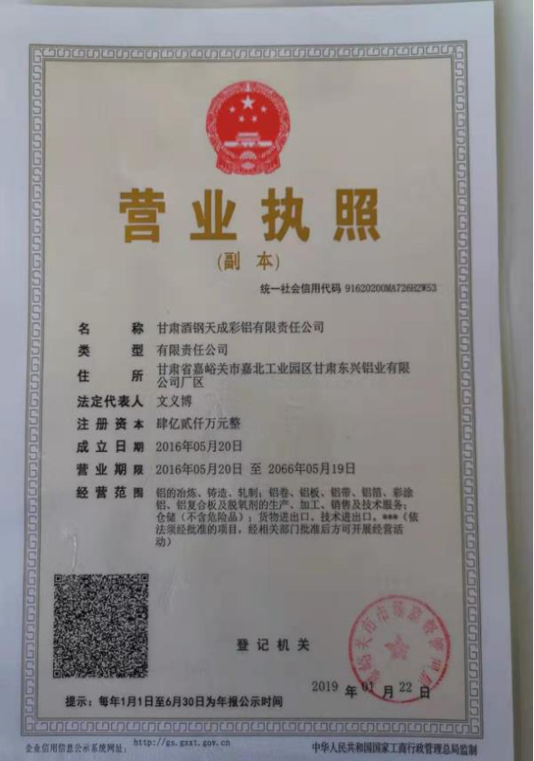 甘肅酒鋼天成彩鋁有限責任公司