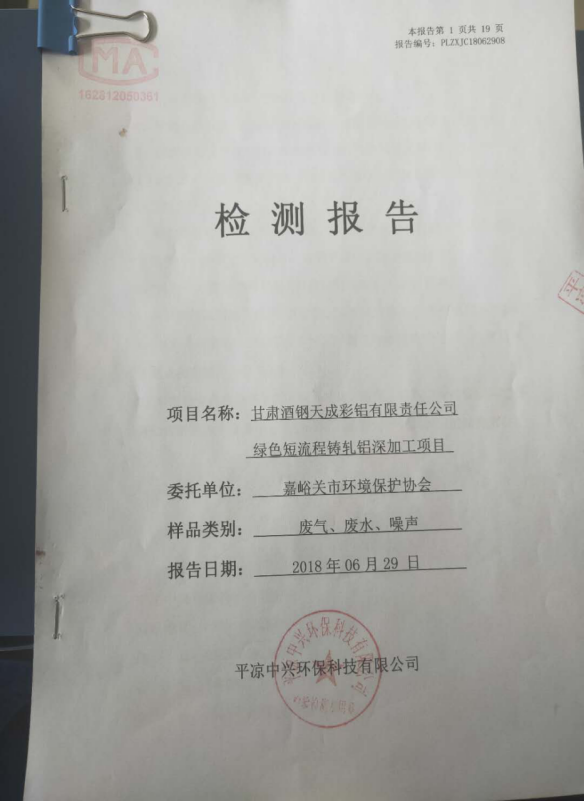 我公司環境影響報告書均通過省生態環境廳與市生態環境局審批,于2016年11月2日取得《嘉峪關市環境保護局關于酒鋼天成彩鋁有限責任公司綠色短流程鑄軋鋁深加工項目環境影響報告書的批復》嘉環評【2016】132號。并在2019年3月4日通過環保建設項目“三同時”(階段性)驗收,并取得環境保護驗收合格函。