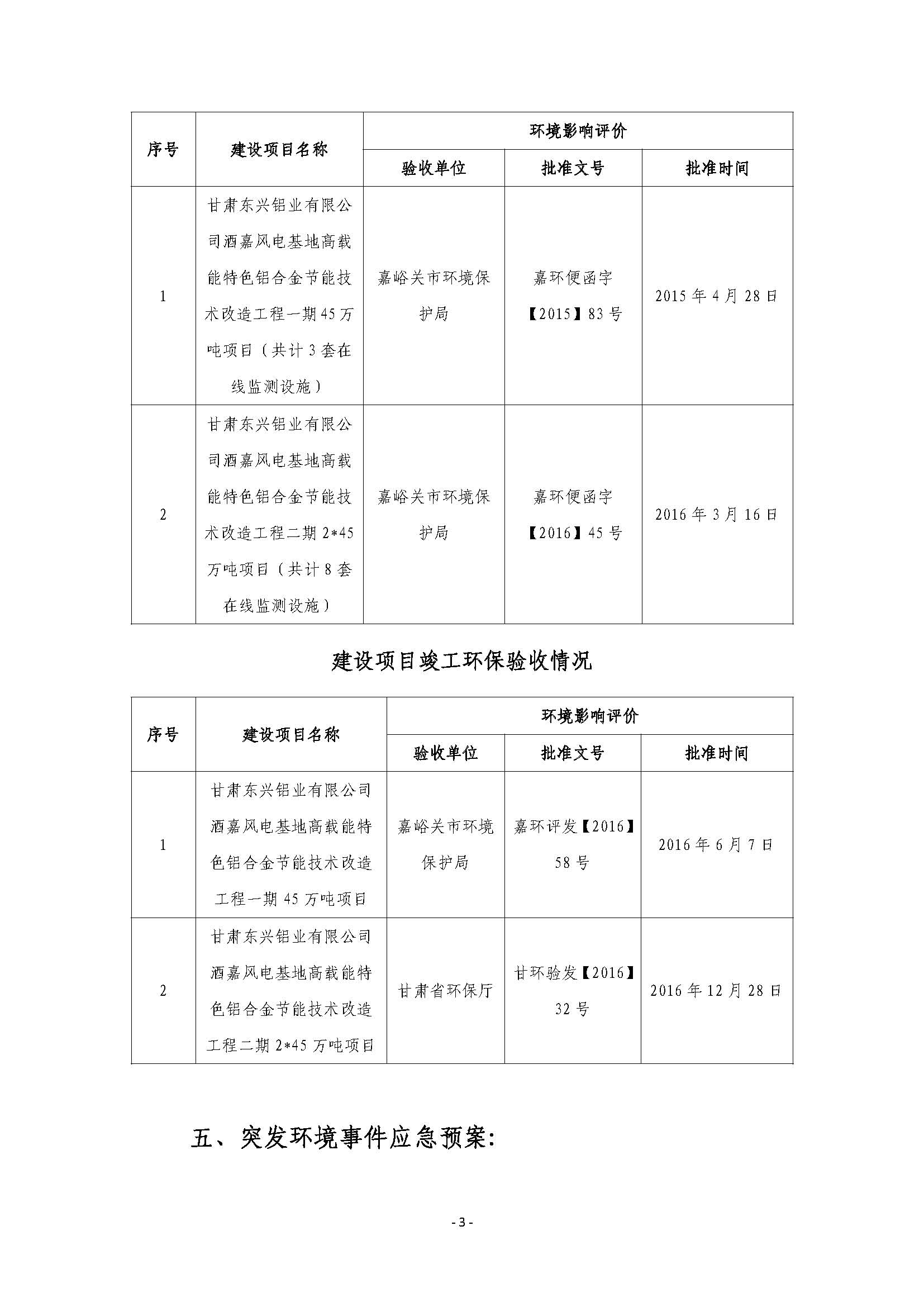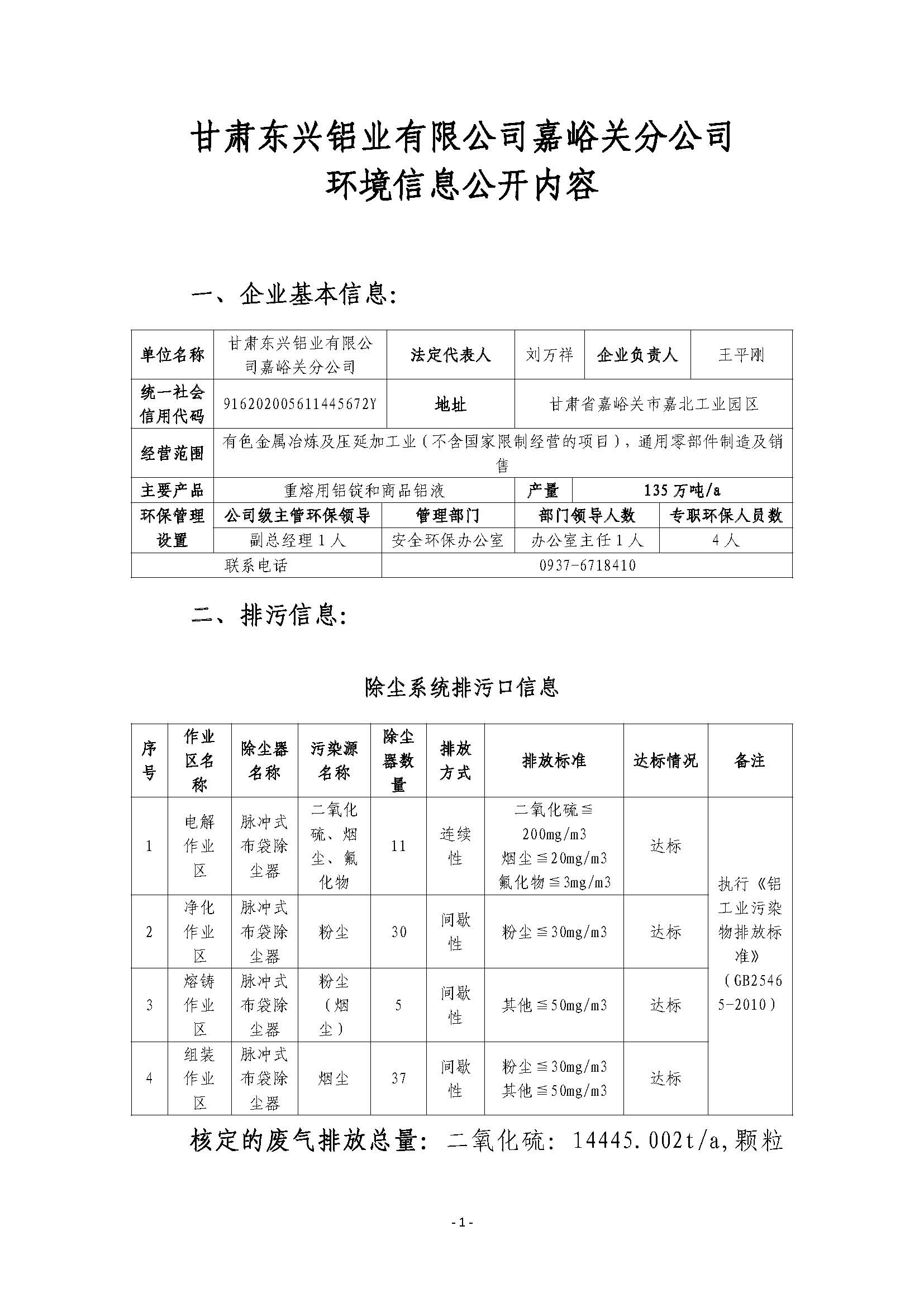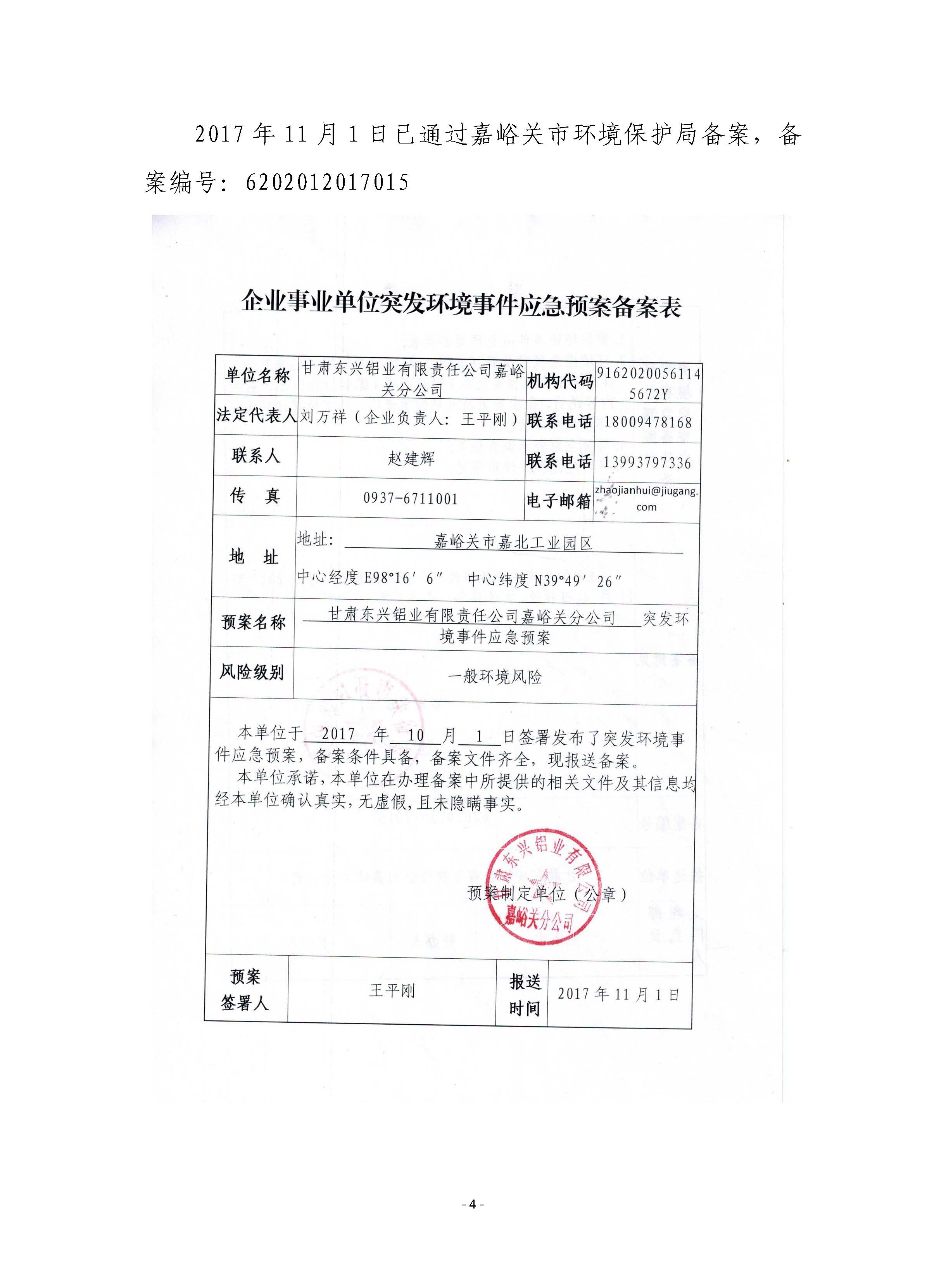 甘肅東興鋁業有限公司嘉峪關分公司2019年度環境信息公開