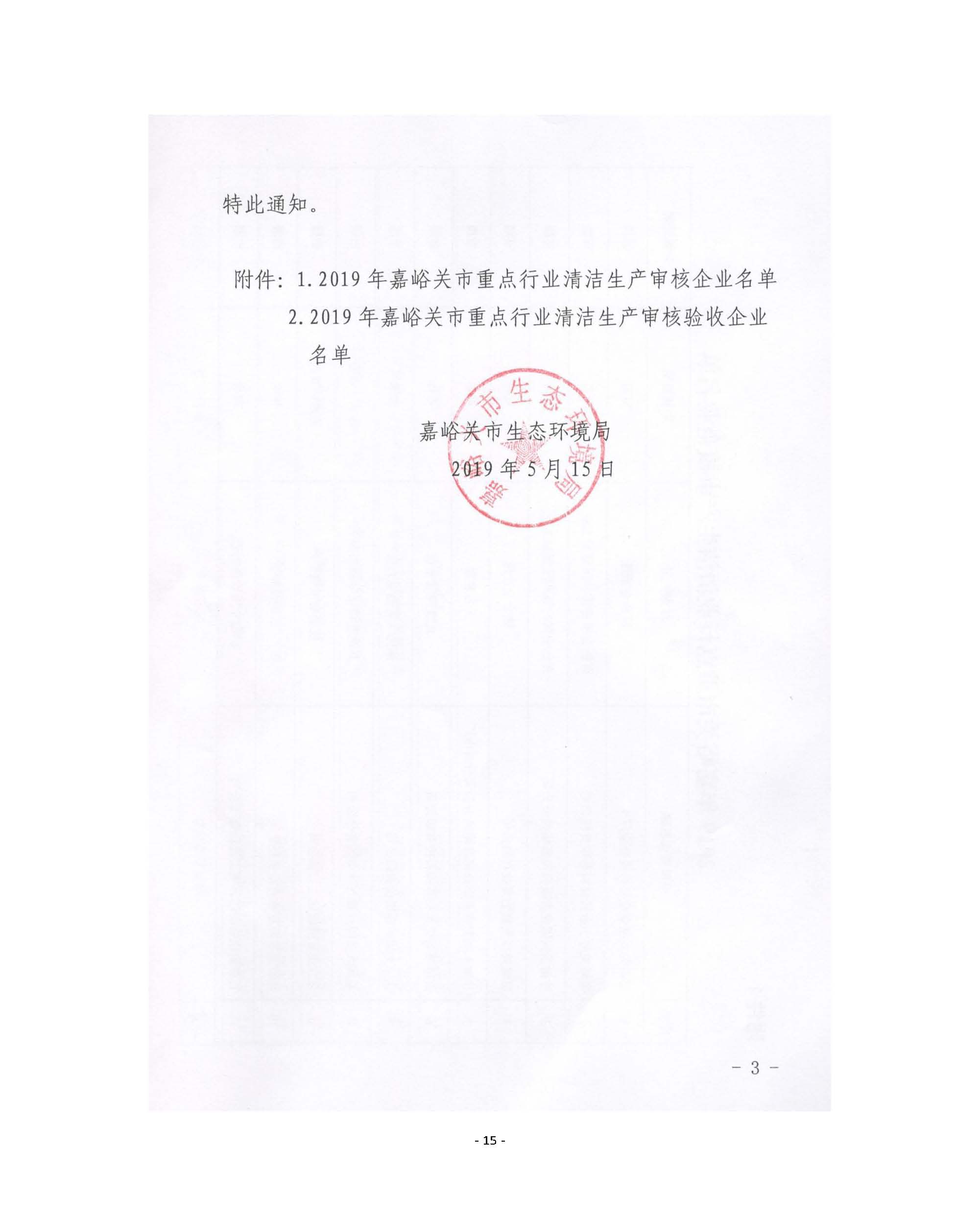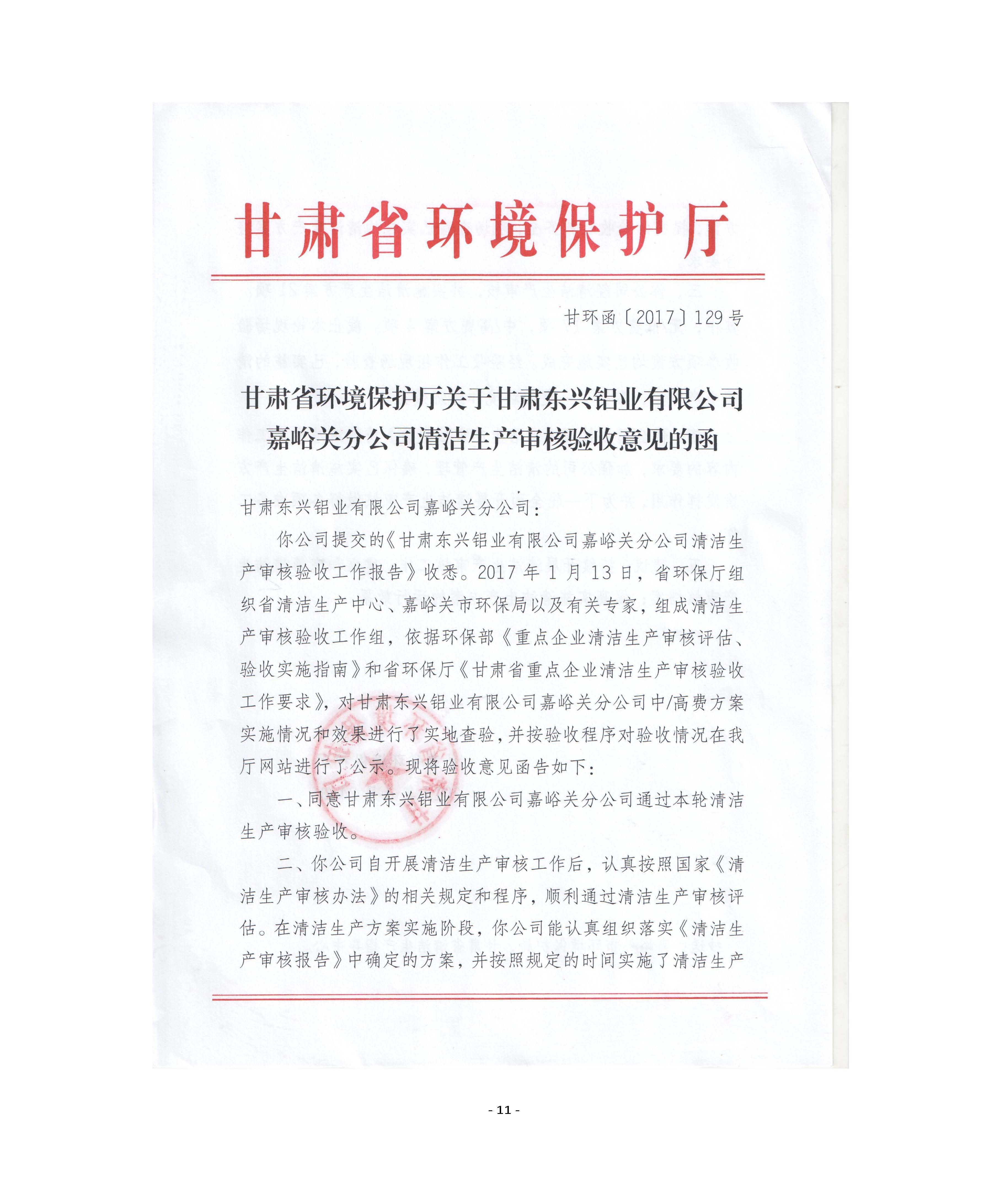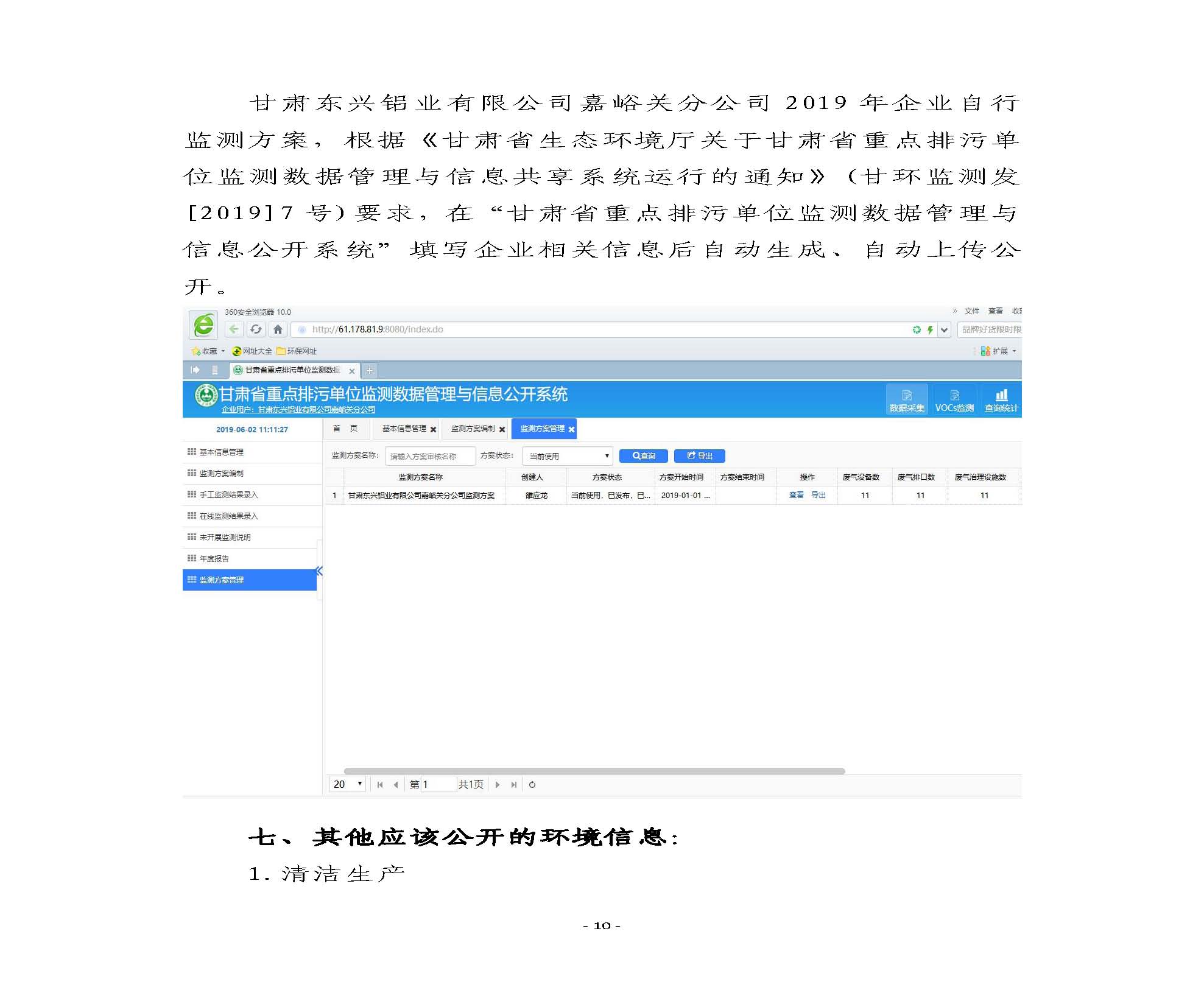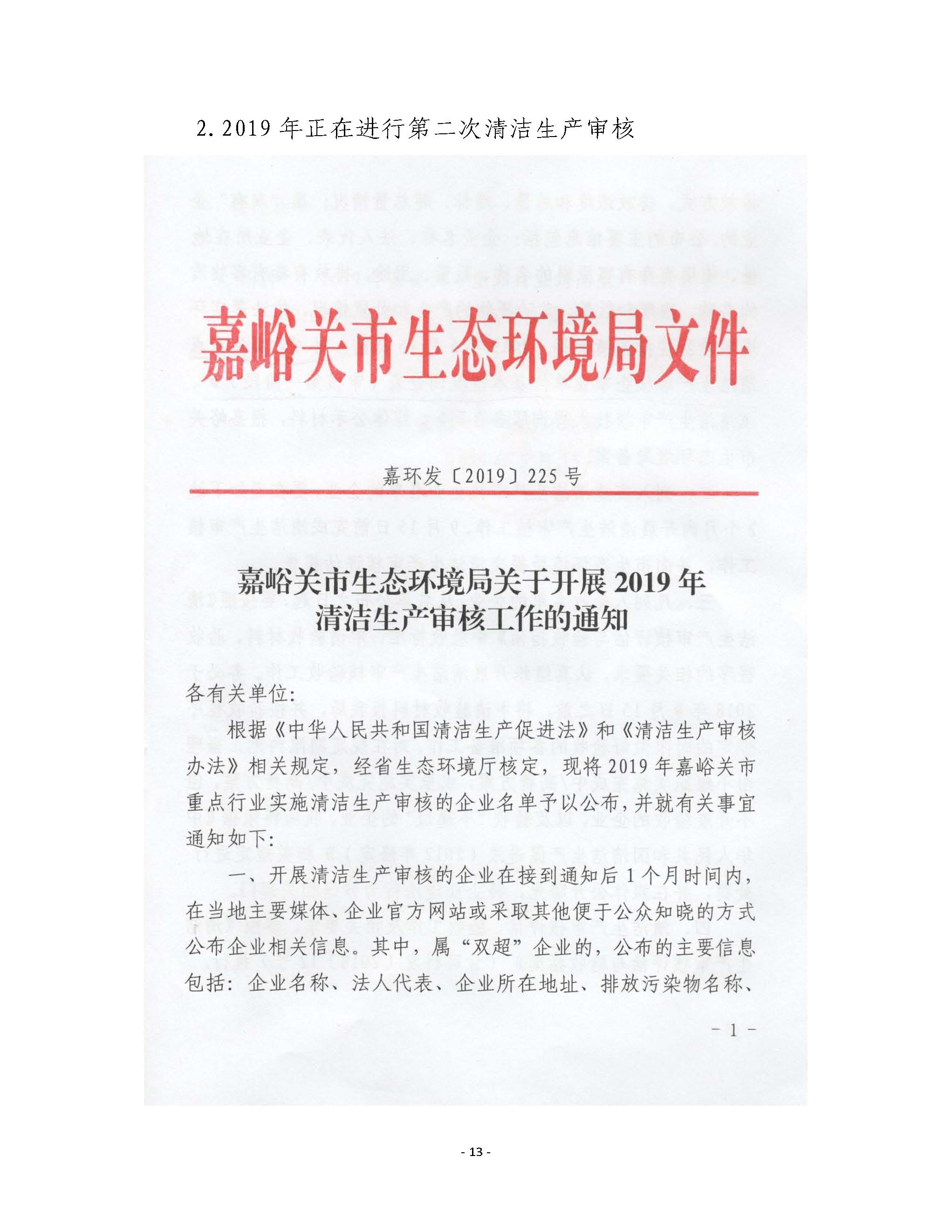 甘肅東興鋁業有限公司嘉峪關分公司2019年度環境信息公開