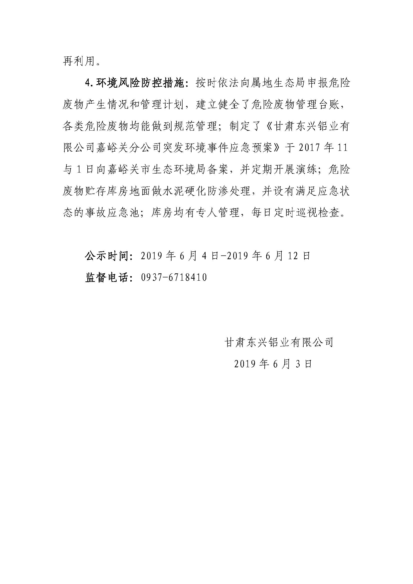 甘肅東興鋁業(yè)有限公司關(guān)于嘉峪關(guān)分公司開展清潔生產(chǎn)審核的公示