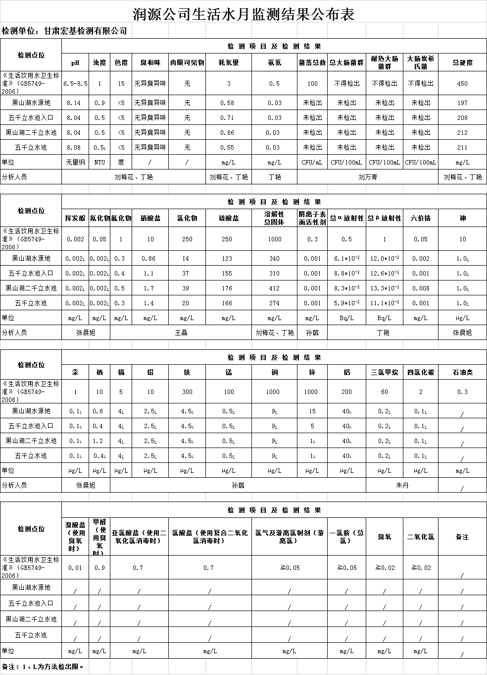 潤(rùn)源公司生活水月監(jiān)測(cè)結(jié)果公布表