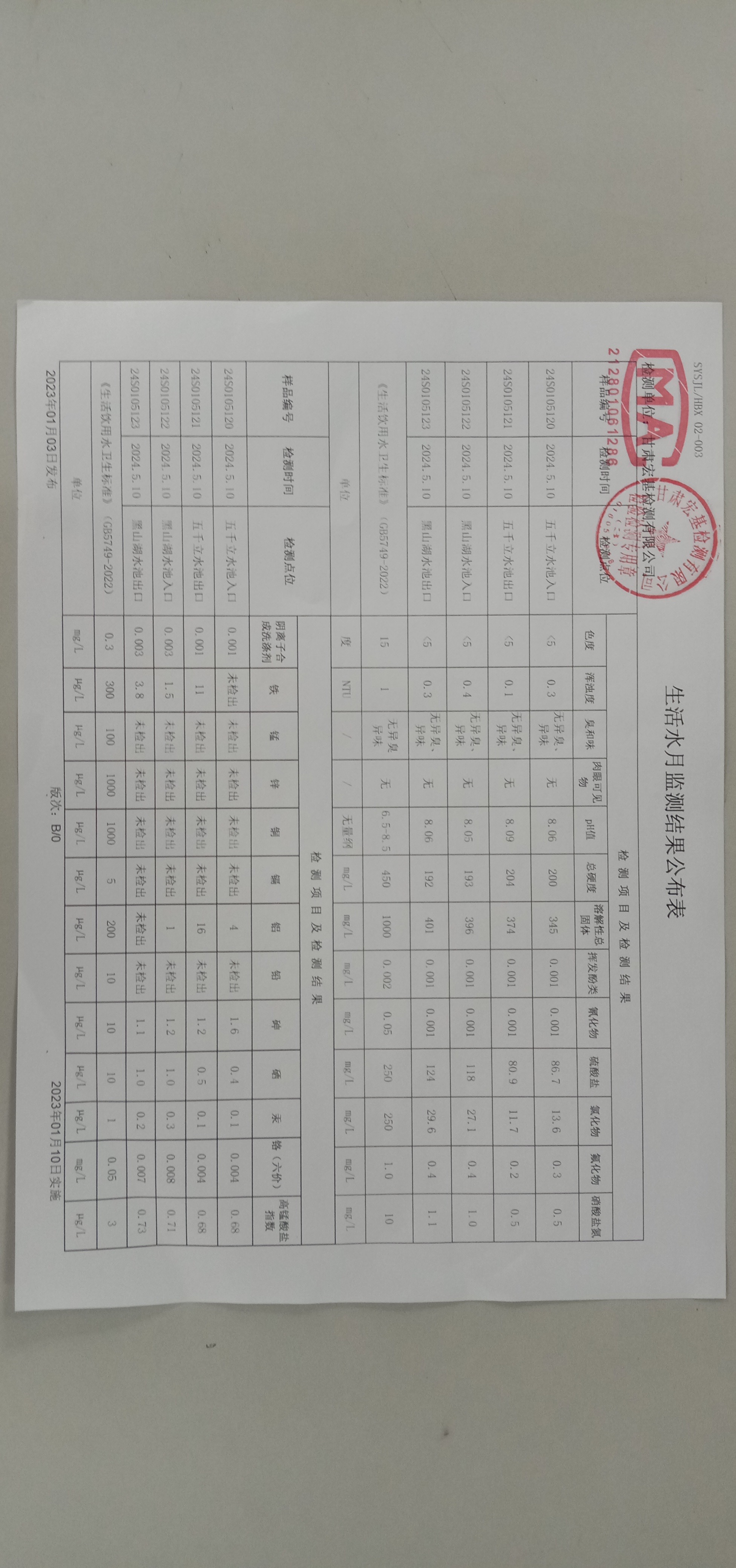 甘肅潤源環境資源科技有限公司水源地水質2024年第二季度公示