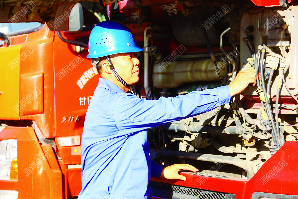 日前,在甘肅省交通運輸行業“喜迎二十大、建功新時代”有關推選評選活動中,宏興股份公司儲運部汽車運輸二作業區板車班班長、共產黨員王冬獲全省交通運輸行業“隴原最美黨員貨車司機”榮譽稱號。王冬自退伍轉業后一直從事駕駛員工作。他每周駕駛車輛往返鏡鐵山礦一至二趟,克服山路艱險、通訊信號差等困難,確保了行車安全,為貨運司機樹立了榜樣。圖為王冬在檢查車況。